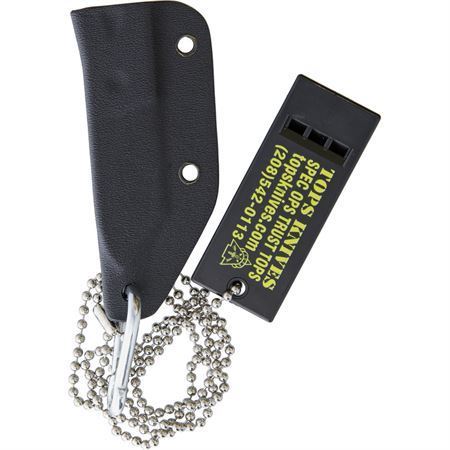 Model/Item/Part - TPCHI01. TOPS Knives - Chico Fixed Black Traction Coating Blade Knife with Carbon Steel Construction. 4.5" overall. 2" carbon steel blade. One piece 1095 carbon steel construction with black traction coating. Carabiner style clip and ball chain lanyard. Also comes with LED mini flashlight. Black Kydex neck sheath. Bulk packed. Made in USA.