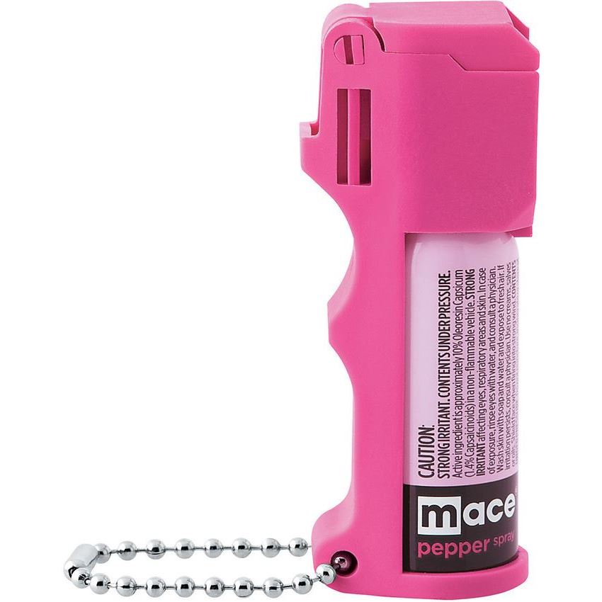 Model/Item/Part - MSI80353. Mace Pepper Sprays - Pocket Model. 10% OC Pepper formula with UV dye. Flip top safety cap prevents accidental discharge. Finger grip dispenser for accurate aim. Contains approximately 5 to 15 short bursts with an effective range of 8 to 12 feet. Net weight 12 grams. Hot pink plastic casing with keychain. Hang packaged. Made in USA.