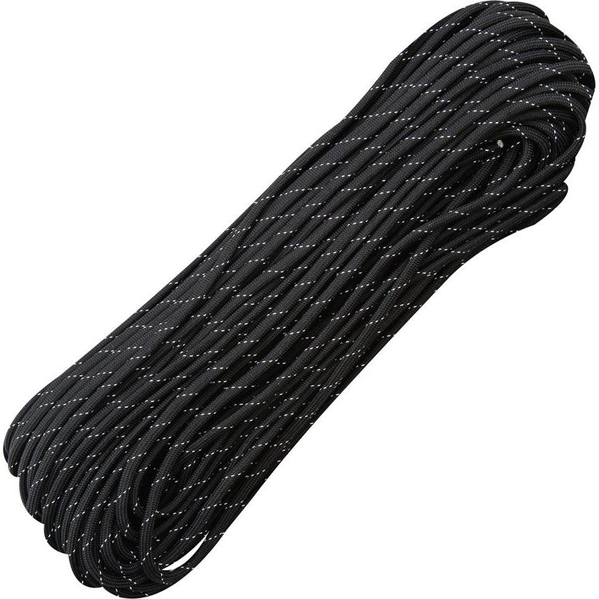 Model/Item/Part - RG1059H. Elite Parachute Cords - Parachute Cord Black with Nylon Construction. Parachute Cord. Black with reflective gray single thread. Rated for 550 lbs. 7 strand. Made in U.S.A. Color may vary due to dye lots. 100ft. Nylon construction. Made in USA.