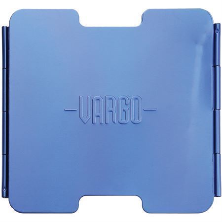 Model - VR421. Vargo 421 - Blue Coloured Windscreen with Aluminum Construction. Measures 16 1/2" x 3 1/4" expanded. One piece, fold flat design. Cut outs for proper ventilation. Light load pot support capacity. Aluminum construction. Color: Blue. Hang packaged. Made in China.