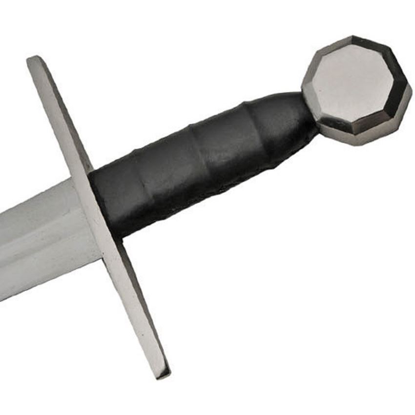 Model - PA910973. Medieval Belt Sword. 38 inch overall. 30 inch carbon steel blade. Leather wrapped handle. Iron guard and pommel. Black leather wrapped sheath with shoulder strap. Bulk packed. Made in India.