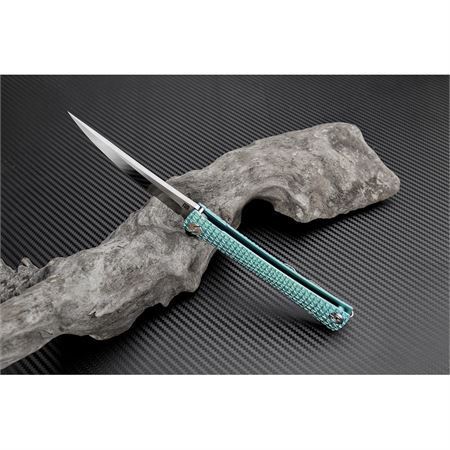 Model/Item/Part - ATZ1805GGNS. Artisan Knives - Waistline Framelock S35V Steel Blade Knife with Green Textured Titanium Handle. Waistline Framelock. 5" closed. 4" satin finish S35VN stainless blade. Green textured titanium handle. Extended tang. Lanyard hole. Pocket clip. Black nylon zippered storage case. Boxed. Made in China.