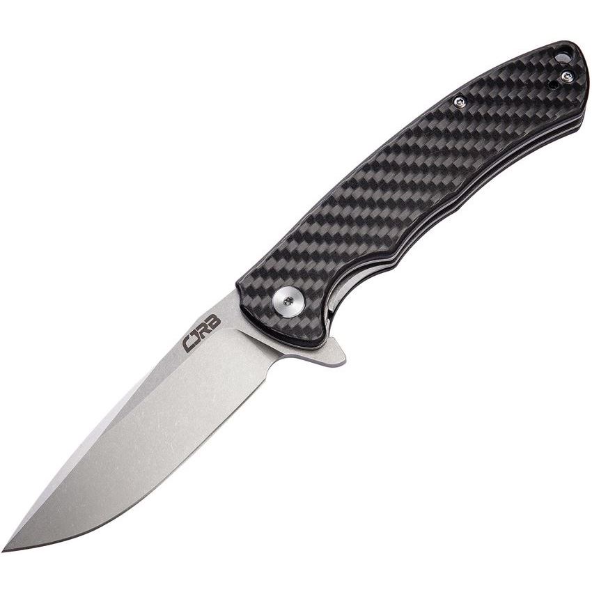 Model/Item/Part - J1903CF. CJRB Knives - Taiga Linerlock Knife Carbon Fiber. 4.75" closed. 3.75" stonewash finish D2 tool steel blade. Carbon fiber handle. Extended tang. Lanyard hole. Pocket clip. Boxed. Made in China.