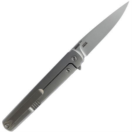 Model/Item/Part - MKMFL01GCT. MKM Maniago Knife Makers - Flame Framelock Knife Drop Micarta. 4.13" (10.49cm) closed. 2.88" (7.32cm) sand blast finish Bohler M390 stainless drop point blade. Green canvas micarta handle with Sand blast finish titanium back handle. Extended tang. Pocket clip. Designed by Michael Zieba. Black ballistic nylon pouch. Boxed. Made in Italy.