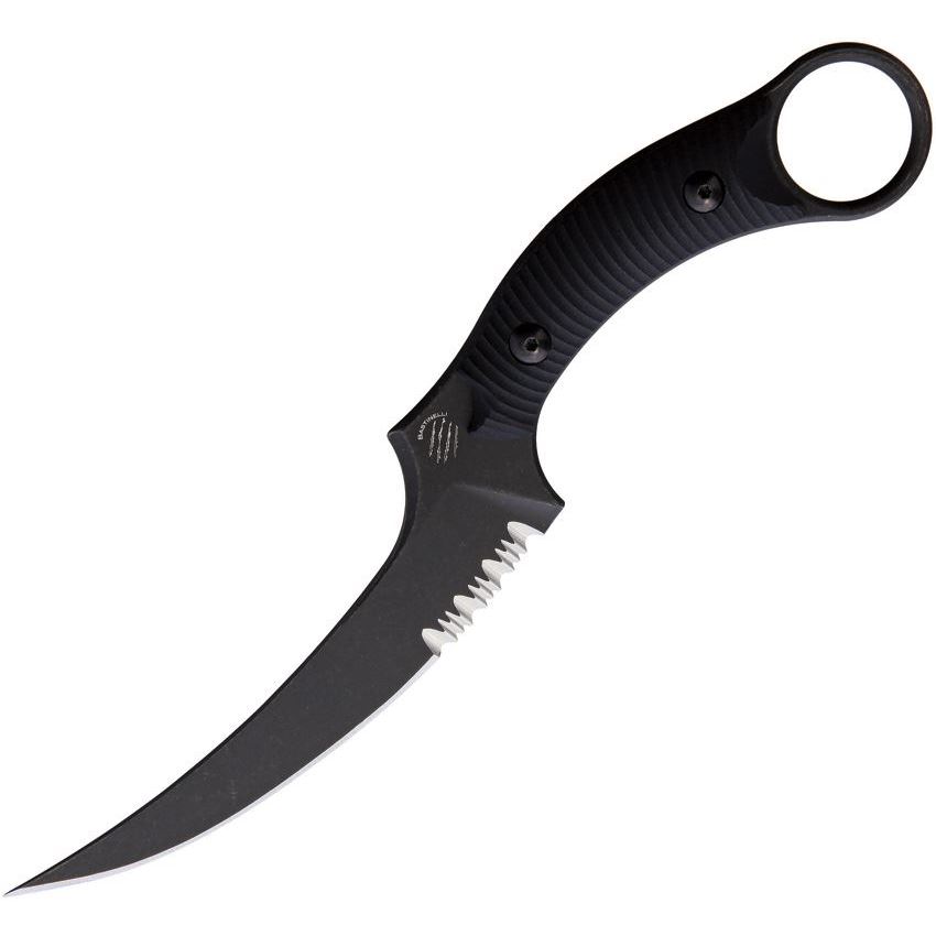 • Bastinelli Creations 206S - Mako Fixed Blade Serrated Knife Black Ring Handles
