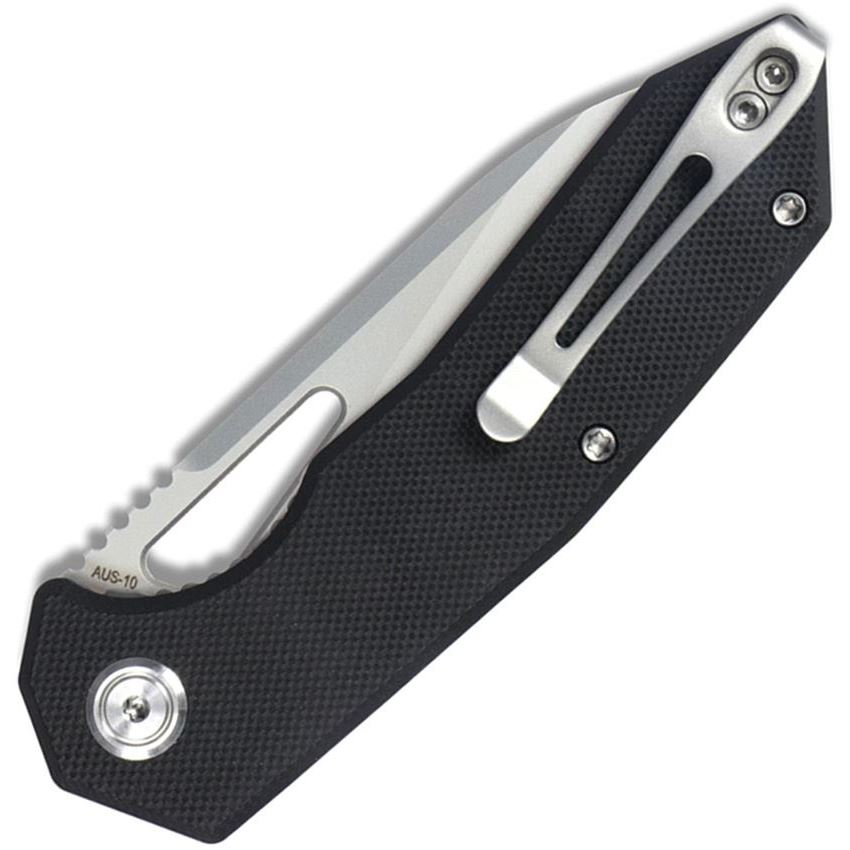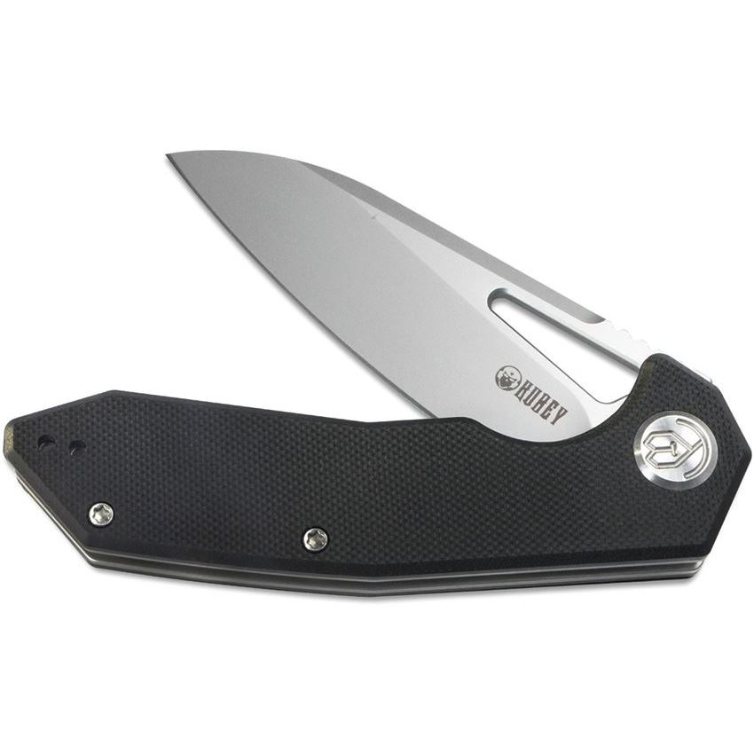 Model/Item/Part - KUB291A. Kubey Knives - Linerlock Knife Black G10. 4.13" (10.49cm) closed. 3" (7.62cm) satin finish AUS-4 stainless blade. Black G10 handle. Thumb pull. Pocket clip. Boxed. Made in China.