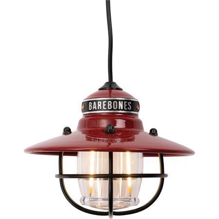 Model - BARE267. Edison String Lights Red. Water resistant. 1.6 Watt warm Edison-style LED bulbs. Modes: High (100 lumens); Low (35 lumens). 10' cord. Carabiner for hanging. Rust-resistant powder-coated steel construction. Also works with Barebones portable charger (not included). 4 inch spacing between each light. Color: Red. Boxed. Made in China