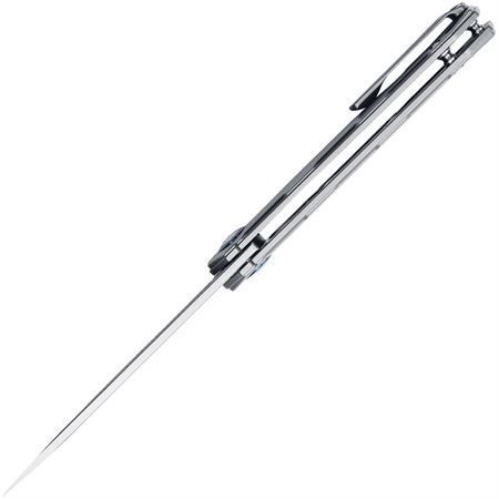 Model/Item/Part - KI4458T2. Kizer Cutlery & Knives - Begleiter Framelock Knife Titanium. 4.5" (11.43cm) closed. 3.5" (8.89cm) satin finish S35VN stainless blade. Gray titanium handle. Extended tang. Lanyard hole. Pocket clip. Black nylon pouch. Boxed. Made in China.