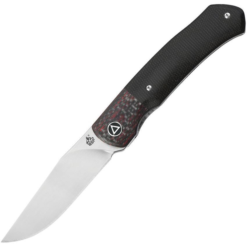 Model/Item/Part - QS137A. QSP Knives - Gannet Linerlock Knife Black. 4.5" (11.43cm) closed. 3.38" (8.59cm) satin finish 154CM stainless blade. Black linen micarta handle. Carbon fiber bolster(s). Pocket clip. Extended tang. Boxed. Made in China.