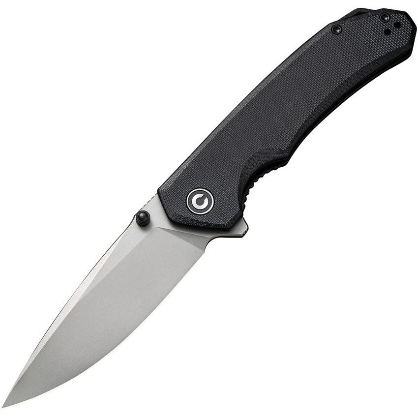 Model/Item/Part - CIVC2102C. Civivi Knives - Brazen Black. 4.5" (11.43cm) closed. 3.5" (8.89cm) stonewash finish 14C28N Sandvik stainless blade. Black G10 handle. Extended tang. Lanyard hole. Pocket clip. Thumb stud. Boxed. Made in China.
