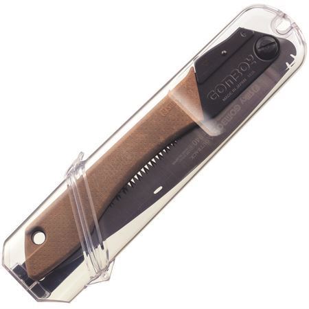 Model -SKS75224. Gomboy Curve Outback Edition. 10.75 inch (27.31cm) closed. 9.5 inch (24.13cm) blade. Lanyard hole. Outback edition. Black plated, impulse-hardened, non-set, Mirai-Me teeth. Arbor composite grip. Plastic storage case. Clam packed. Made in Japan.