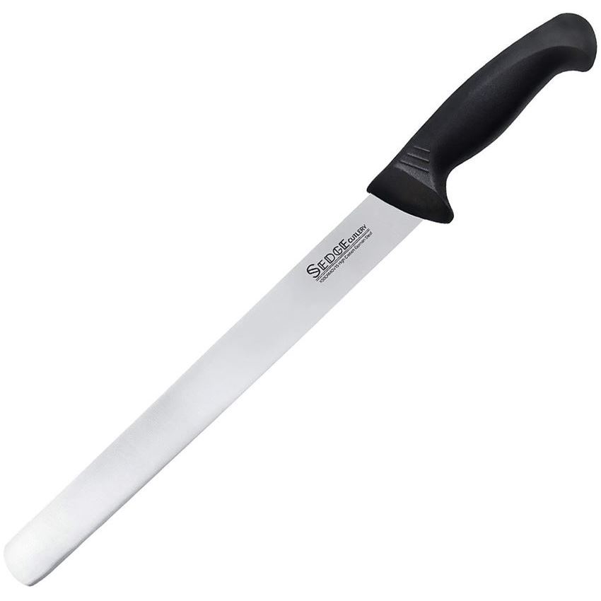 Model - TCSP008. Tuo Cutlery SP008 - Sedge Slicing Knife 11in. 16.25" (41.28cm) overall. 11" (27.94cm) satin finish X50CrMoV15 stainless blade. Black synthetic handle. Clam packed. Made in China.