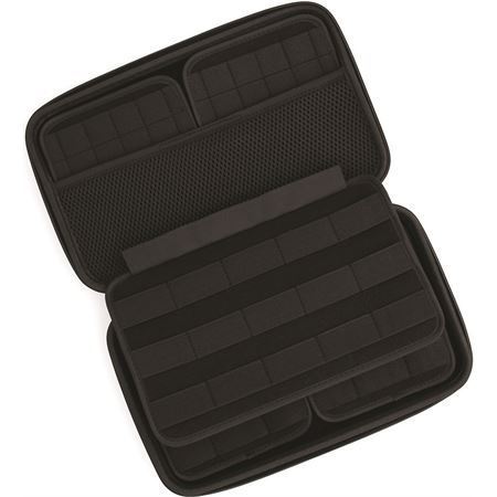 Model/Item/Part - VLT001. Vault Case Company - Vault Standard Smooth. Product Dimensions: 11.5" x 6.75". Smooth black exterior. Two micro loops and two standard loops. One large loop panel. Double zipper with rubber pulls. Carry handle. Bulk packed. Made in China.