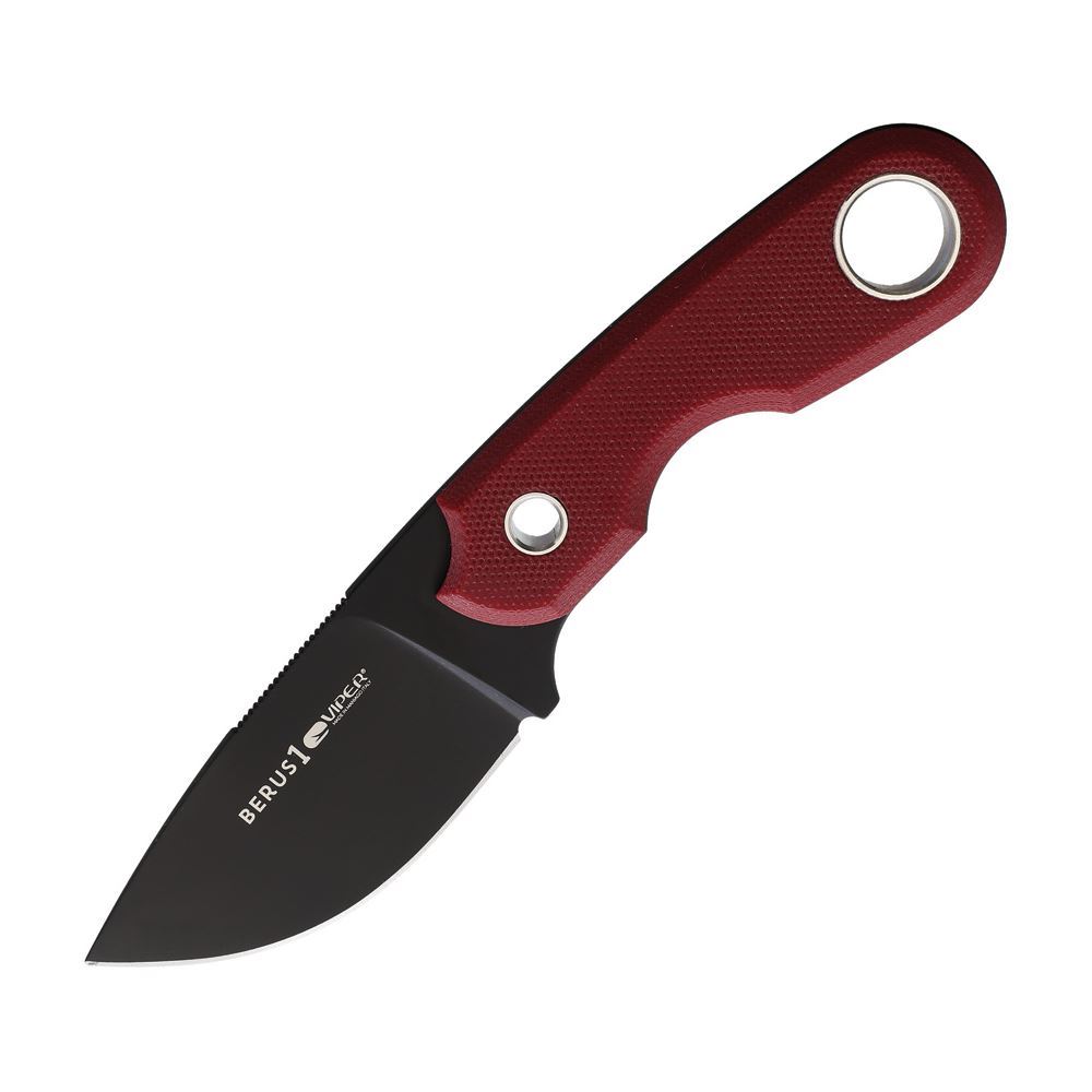 Model - VT4012DGR. Viper T4012DGR - BERUS1 Lama Drop Red. 6" (15.24cm) overall. 2.5" (6.35cm) black PVD coated Bohler M390 stainless drop point blade. Red G10 handle. Full tang. Lanyard hole. Black Kydex belt sheath. Designed by Tommaso Rumici. Boxed. Made in Italy.