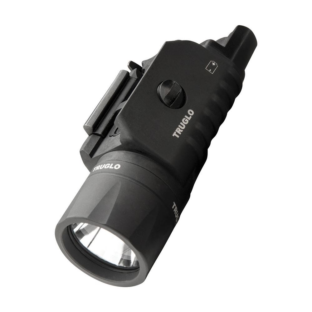 Model/Item/Part - TG7650G. TRUGLO - TruPoint Laser/Light Combo. Waterproof. Shockproof. 520nm green laser. 200 peak lumen flashlight. Three modes: Laser only, flashlight only, and combination. Fingertip activation. Laser located in flashlight housing for compact design. Interchangeable back plates for right/left hand use. Mounts to Picatinny and Weaver-style rails. Quick-detach lever for tool-less removal. Includes remote pressure switch. Fits most tactical-style handguns and long guns. Operating temperature: 14F to 122F. Aluminum construction. Color: Black. Boxed. Made in China.