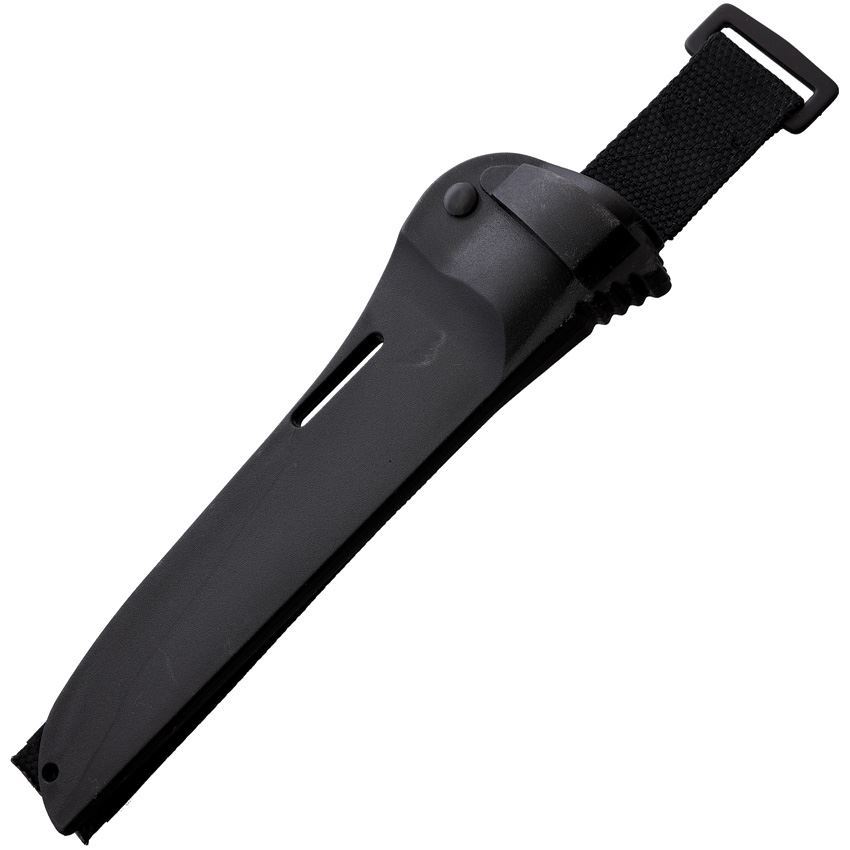 Model - KLJPM95C. Kellam Ranger Puukko Composite. 11" (27.94cm) overall. 6" (15.24cm) Teflon coated 80CrV2 carbon steel blade. Black rubber handle. Lanyard hole. Black composite belt sheath. Bulk packed. Made in Finland.