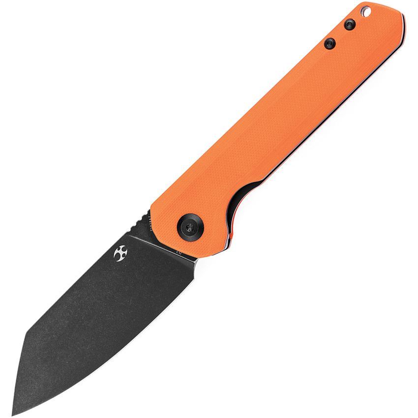 Model/Item/Part - KT1028A7. Kansept Knives - Bulldozer Framelock Orange. 4.75" (12.07cm) closed. 3.75" (9.53cm) black TiCN coated D2 tool steel blade. Orange G10 handle. Extended tang. Lanyard hole. Pocket clip. Black nylon pouch. Boxed. Made in China.