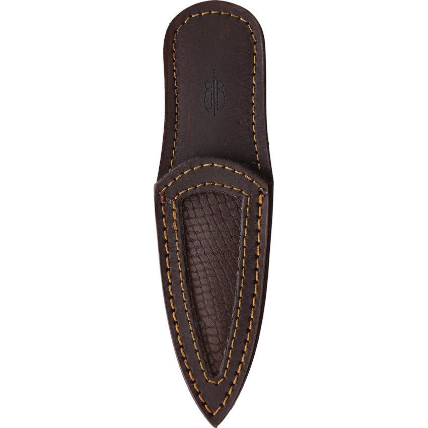 Model/Item/Part - BNB15912. BucknBear Knives - Bodice Dagger. 6.5" (16.51cm) overall. 3.25" (8.26cm) double edge Damascus steel blade. Green micarta handle. Stainless bolster(s). Full tang. Brown leather belt sheath. Boxed. Made in Pakistan.