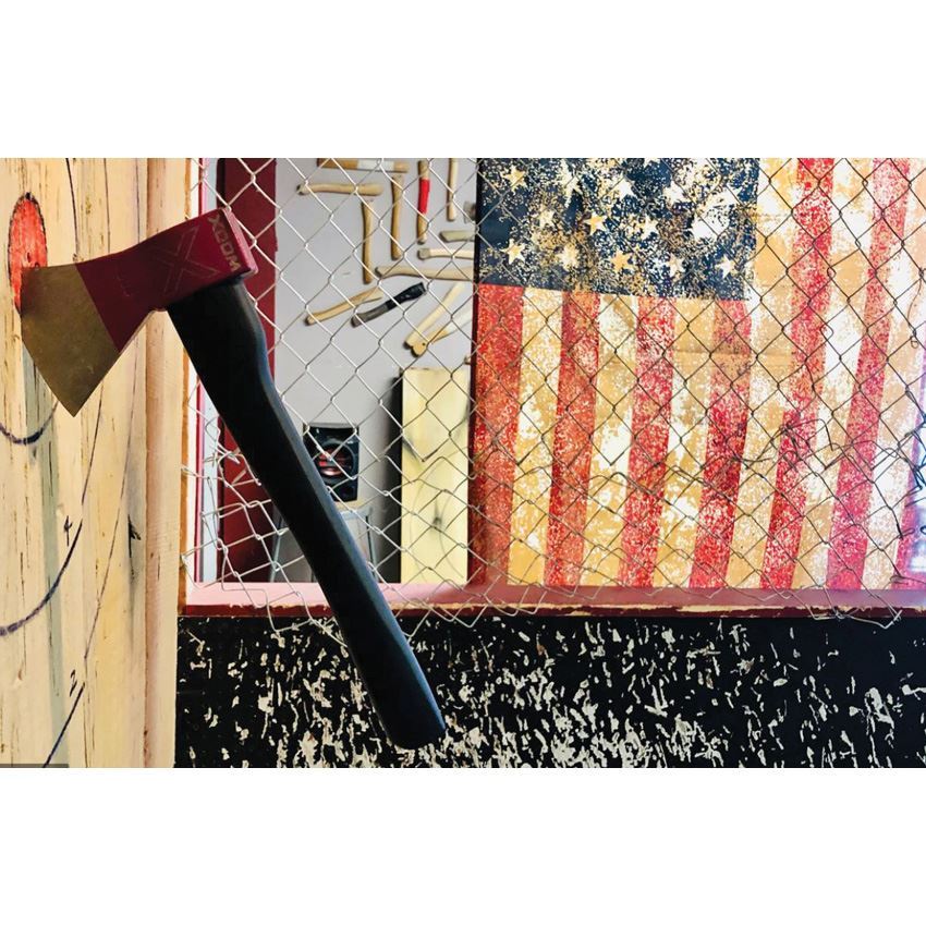 Model/Item/Part - WXA04004. WOOX - Thunderbird Throwing Axe Purp. 19" overall. 8.25" 1045 carbon steel axe head with 3.5" cutting edge. Brown American Hickory handle. Weight: 1.85lb. Mattock. Black leather belt sheath. Boxed. Made in Italy.