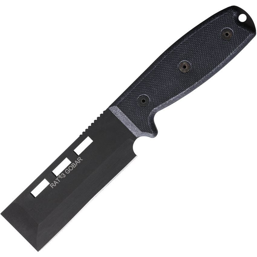 Model/Item/Part - ON8660. Olight - RAT 3 Gobar. 7.88" (20.02cm) overall. 3.5" (8.89cm) black phosphate coated carbon steel blade. Blue-Gray micarta handle. Full, extended tang. Lanyard hole. Black nylon belt sheath. Boxed. Made in USA.
