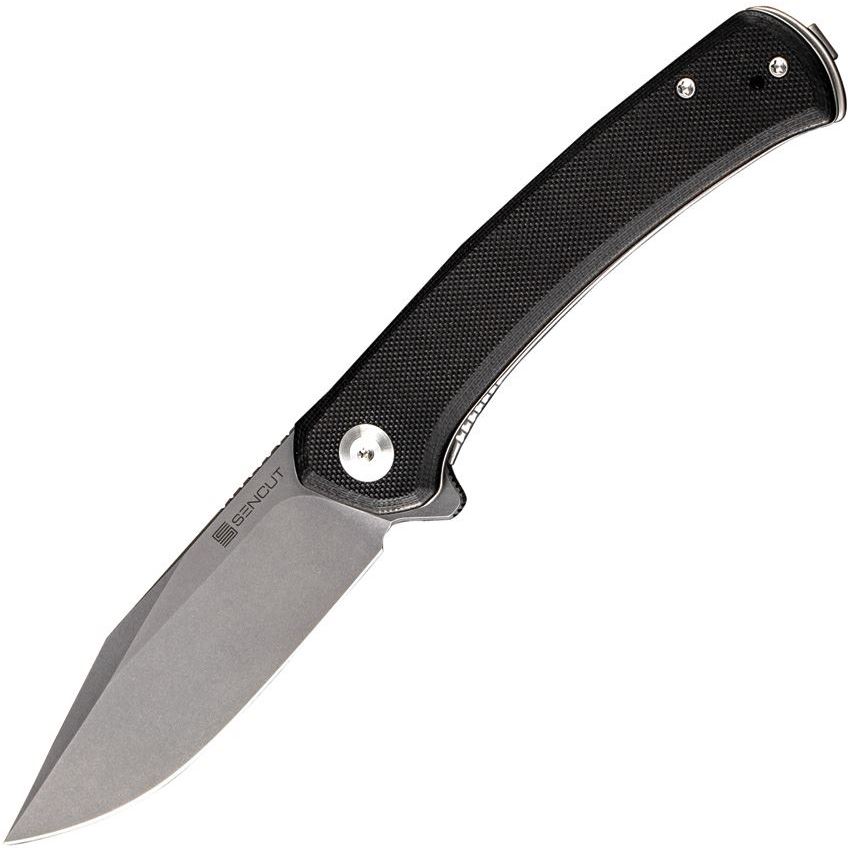 Model/Item/Part - SA05BV1. SenCut Knives - Snap Linerlock Black G10. 4.63" (11.76cm) closed. 3.5" (8.89cm) stonewash finish 9Cr18MoV stainless clip point blade. Black G10 handle. Extended tang. Pocket clip. Black nylon zippered storage case. Boxed. Made in China.