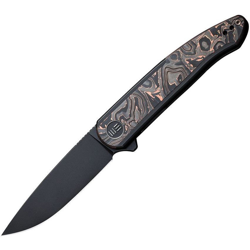 • WE 200436 - Smooth Sentinel Black Framelock Knife Black/Copper Foil Carbon Fiber Handles