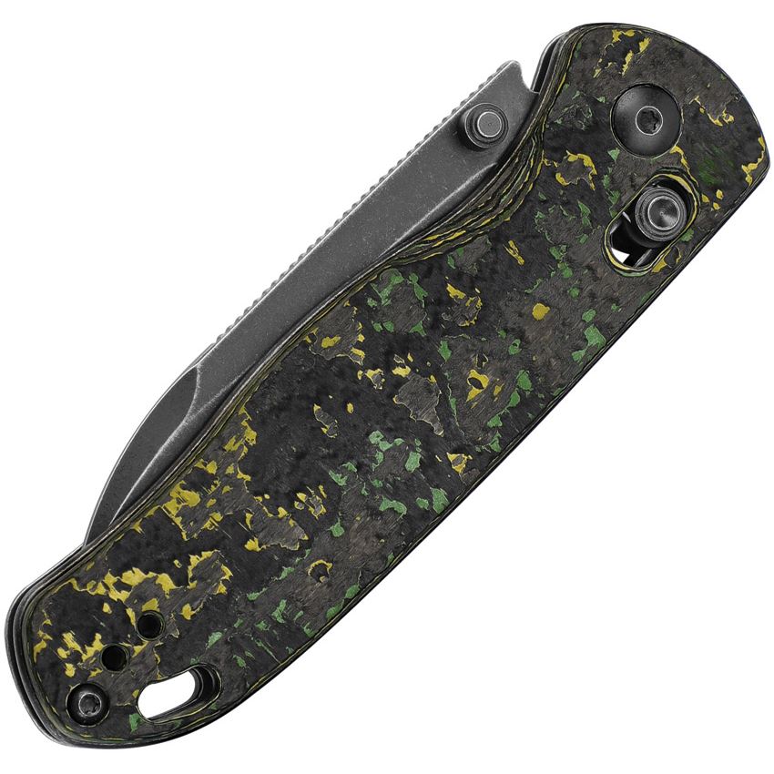 Model/Item/Part - KI3619A1. Kizer Cutlery & Knives - Drop Bear Clutch Lock CF. 4.13" (10.49cm) closed. 3" (7.62cm) black stonewash finish CPM-20CV stainless spear point blade. Thumb stud. Lanyard hole. Pocket clip. Toxic storm carbon fiber handle. Black nylon pouch. Boxed. Made in China.