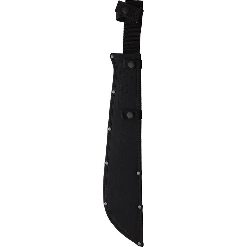 Model/Part Number - ON8695SEC. Ontario Bushcraft Machete w/Nylon. 22" (55.88cm) overall. 16" (40.64cm) black powder coated blade. Natural canvas micarta handle. Full tang. Please note: Blade steel may change without notice, depending on availability of materials at time of manufacture. Cosmetic blemish factory second. Black nylon belt sheath. Bulk packed. Made in USA.