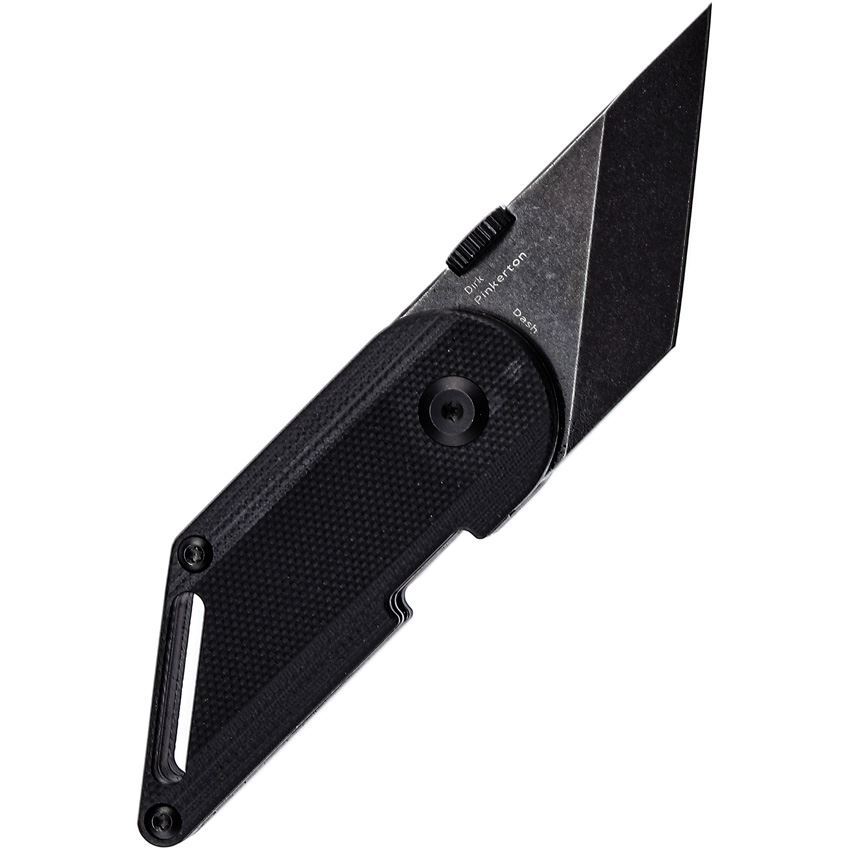 Model/Item/Part - KT3045A1. Kansept Knives - Pinkerton Dash Linerlock Black. 2.88" (7.32cm) closed. 1.69" (4.29cm) black stonewash finish 154CM stainless tanto blade. Black G10 handle. Thumb disk. Lanyard hole. Black nylon pouch. Boxed. Made in China.