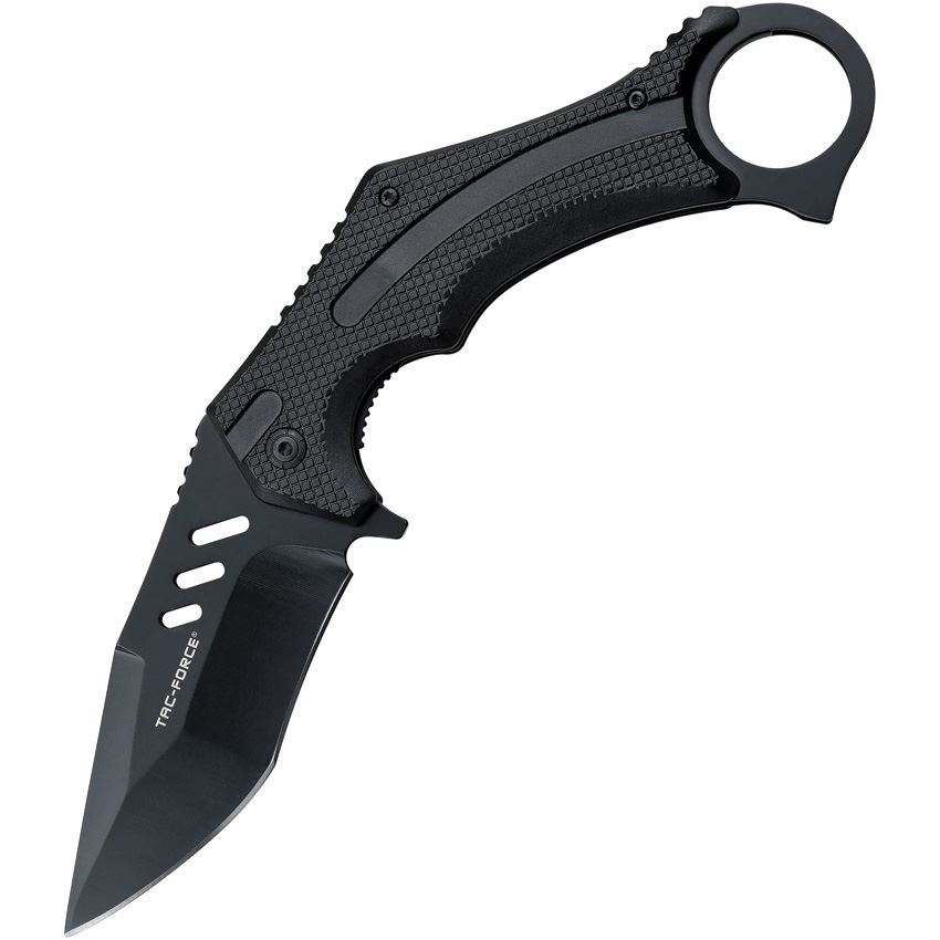 Model/Item/Part - TF1044BK. Tac Force Knives - Assist Open Linerlock Knife with Black Handles. Assisted opening. 5.63" (14.3cm) closed. 3.75" (9.53cm) black finish 3Cr13 stainless tanto blade. Black ABS handle. Extended tang. Finger ring. Pocket clip. Boxed. Made in China.