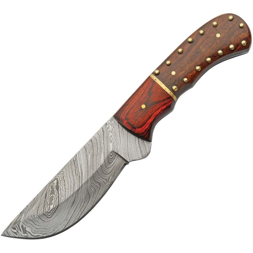 Damascus 1348 Studded Skinner Damascus Fixed Blade Knife Brown/Red Wood Handles
