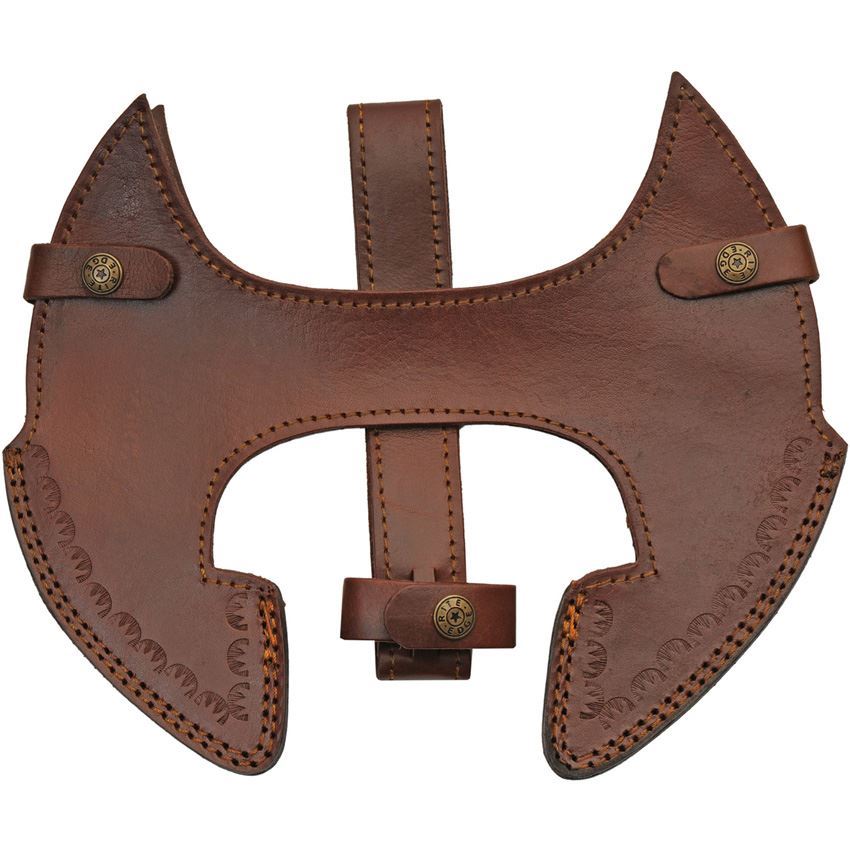 Model/Item/Part Number - PA882460. Pakistan Celtic Battle Axe. 32.5" overall. 11" stainless axe head with 9" cutting edge. Blade etching. Burnt ash wood handle. Brown leather belt sheath. Boxed. Made in Pakistan.