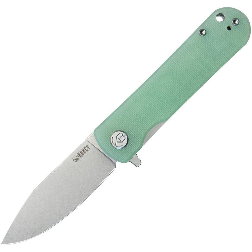 Model/Item/Part - KUB371C. Kubey Knives - NEO Knife Jade Handles. 4.5" (11.43cm) closed. 3.5" (8.89cm) bead blast finish AUS-10A stainless blade. Jade G10 handle. Extended tang. Lanyard hole. Pocket clip. Boxed. Made in China.
