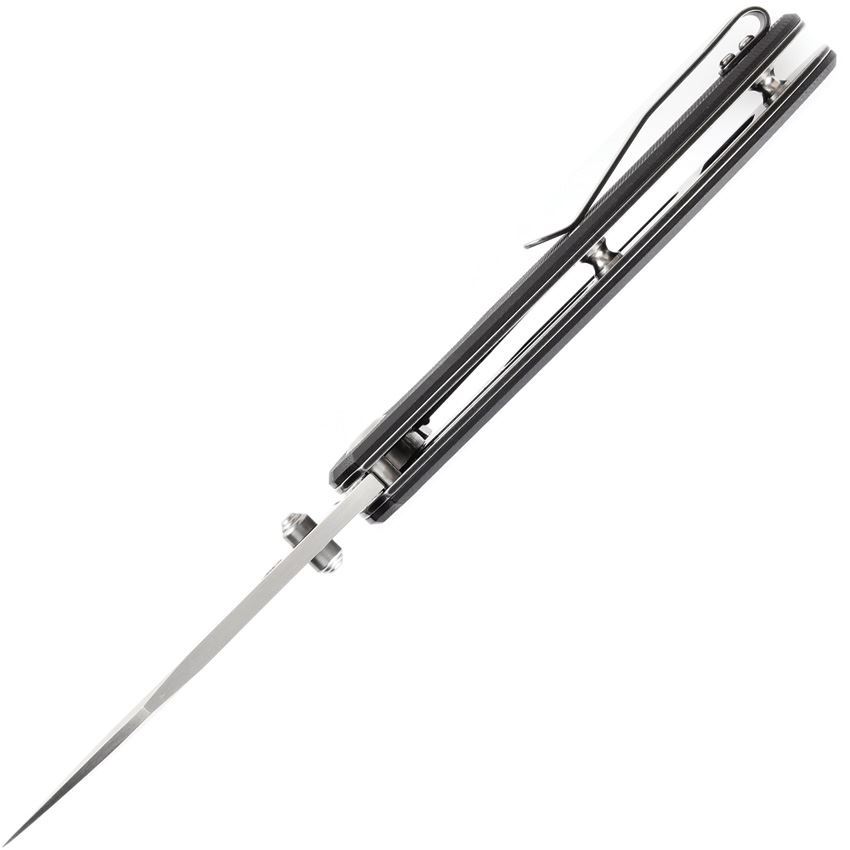 Model/Item/Part - KT1039A1. Kansept Knives - Nesstreet Knife Black G10 Handles. 4.5" (11.43cm) closed. 3.5" (8.89cm) satin finish 154CM stainless blade. Black G10 handle. Thumb stud. Pocket clip. Black nylon pouch. Boxed. Made in China.