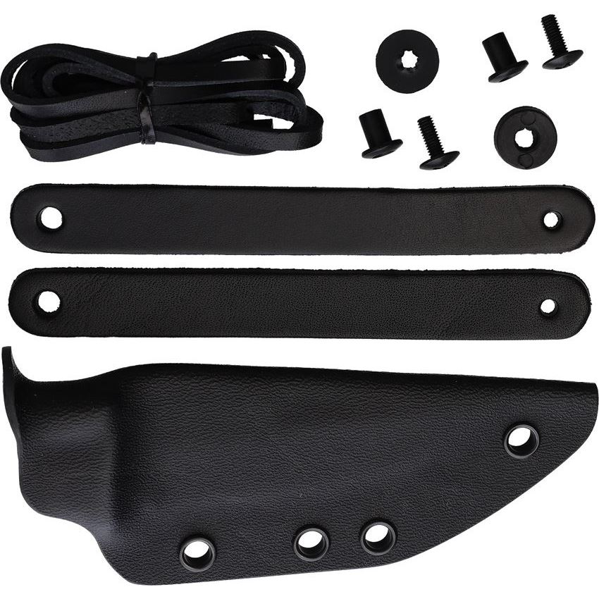 Model/Item/Part - MKMKSTPFD. MKM Maniago Knife Makers - TPF Defense Kydex Sheath. Includes: Leather laces for belt carry; Leather lace for neck carry. (2) Mounting screws; Spacers for ULTICLIP. For MKM TPF Defense fixed blade. Kydex construction. Color: Black. Boxed. Made in Italy.