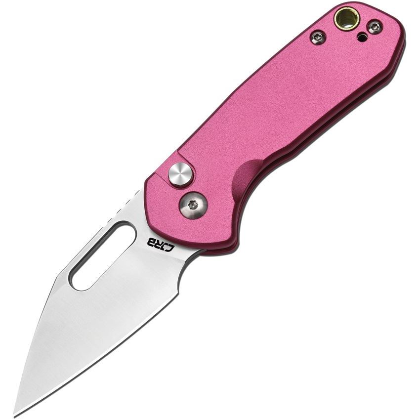 Model/Item/Part - J1933PK. CJRB Knives - Mini Pyrite Button Lock Knife Pink Handles. 3.13" (7.95cm) closed. 2.13" (5.41cm) satin finish AR-RPM9 stainless Wharncliffe blade. Pink aluminum handle. Thumb pull. Lanyard hole. Pocket clip. Black nylon zippered storage case. Boxed. Made in China.