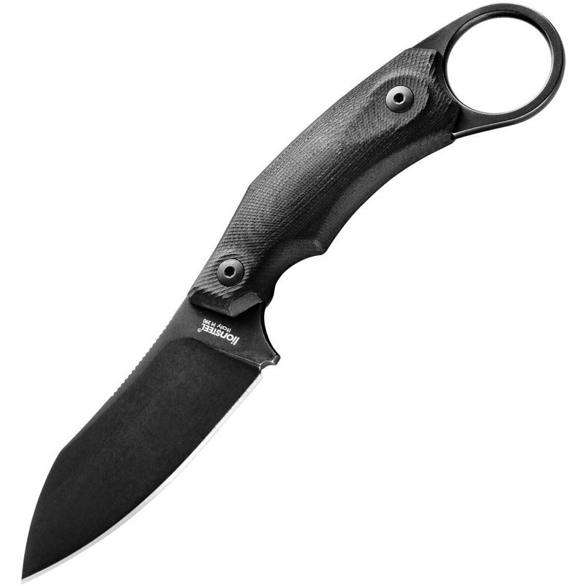 Model/Item/Part - LSTH1BGBK. Lion-Steel Knives - H1 Fixed Blade Skinner. 7.25" (18.42cm) overall. 3" (7.62cm) black PVD coated Bohler M390 stainless skinner blade. Black G10 handle. Full, extended tang. Finger ring. Black Kydex belt sheath. Boxed. Made in Italy.