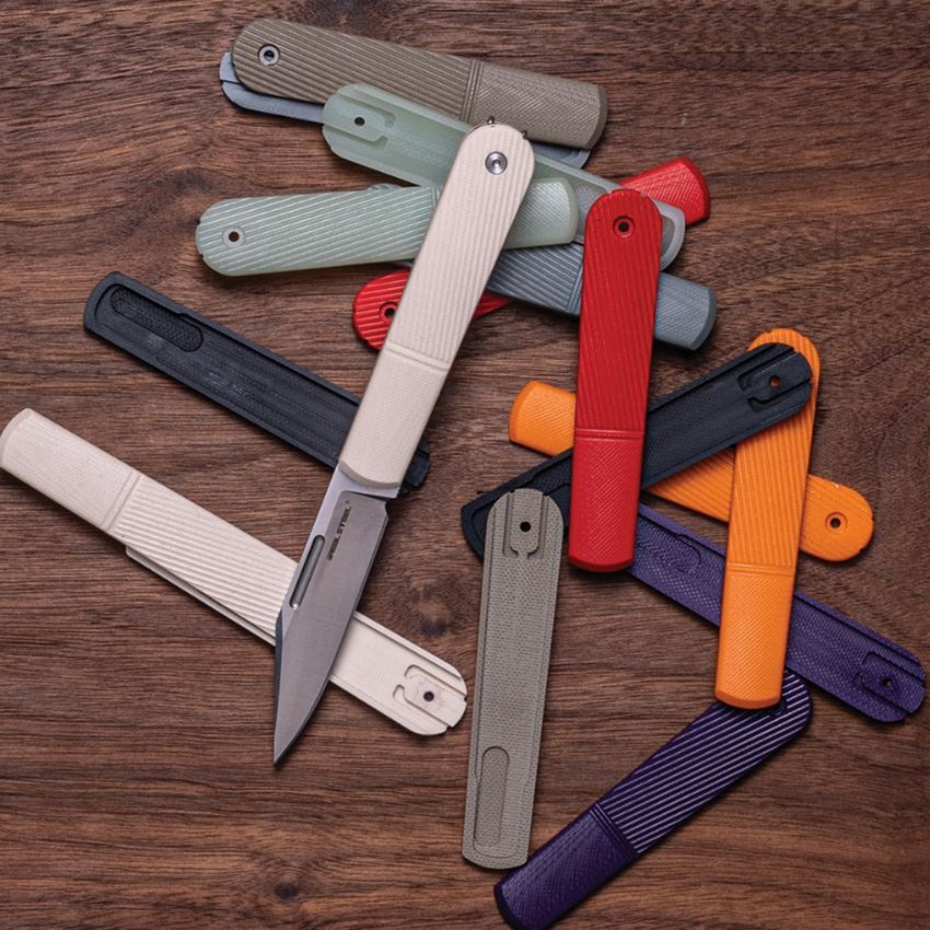 Model/Item/Part - RSHS8024. Real Steel Knives - Barlow Scales Orange. Fits Real Steel Barlow RB5 folder. Orange G10 construction. Boxed. Made in China.