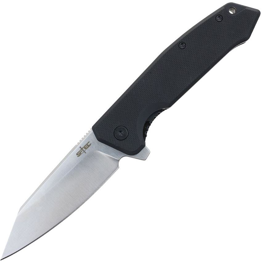 Model/Item/Part - STTS025BK. S-TEC Knives - Linerlock Knife with Black Handles. 4.5" (11.43cm) closed. 3.5" (8.89cm) satin finish 8Cr14MoV stainless blade. Black G10 handle. Extended tang. Lanyard hole. Pocket clip. Boxed. Made in China.