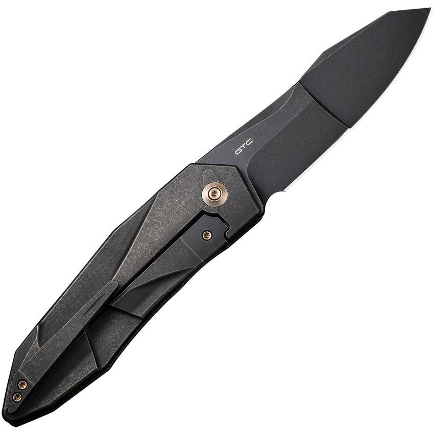 Model/Item/Part - WE220281. WE Knife Company - Solid Framelock Knife Black Stonewashed Handles. 5.13" (13.03cm) closed. 3.88" (9.86cm) black stonewash finish CPM-20CV stainless blade. Black stonewash finish titanium handle. Pocket clip. Black nylon zippered storage case. Boxed. Made in China.