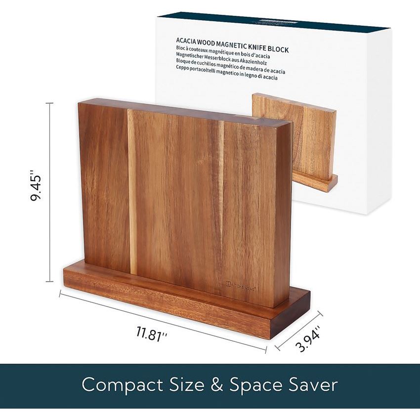 Model/Item/Part - KD0438. Kitchen DAO Magnetic Knife Block Wood. Dimensions: 11.8" x 4" x 9.5". Anti-slip feet. Internal magnets to secure kitchen blades and utensils. Acacia wood construction. Boxed. Made in China.