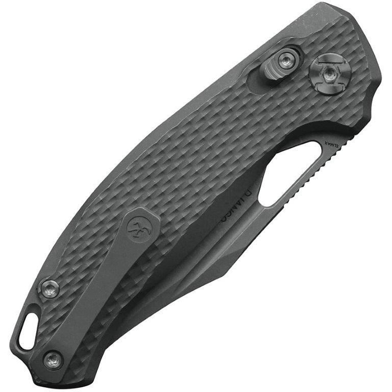 • 3.25 inch (8.26cm) stonewash finish Elmax steel clip point blade