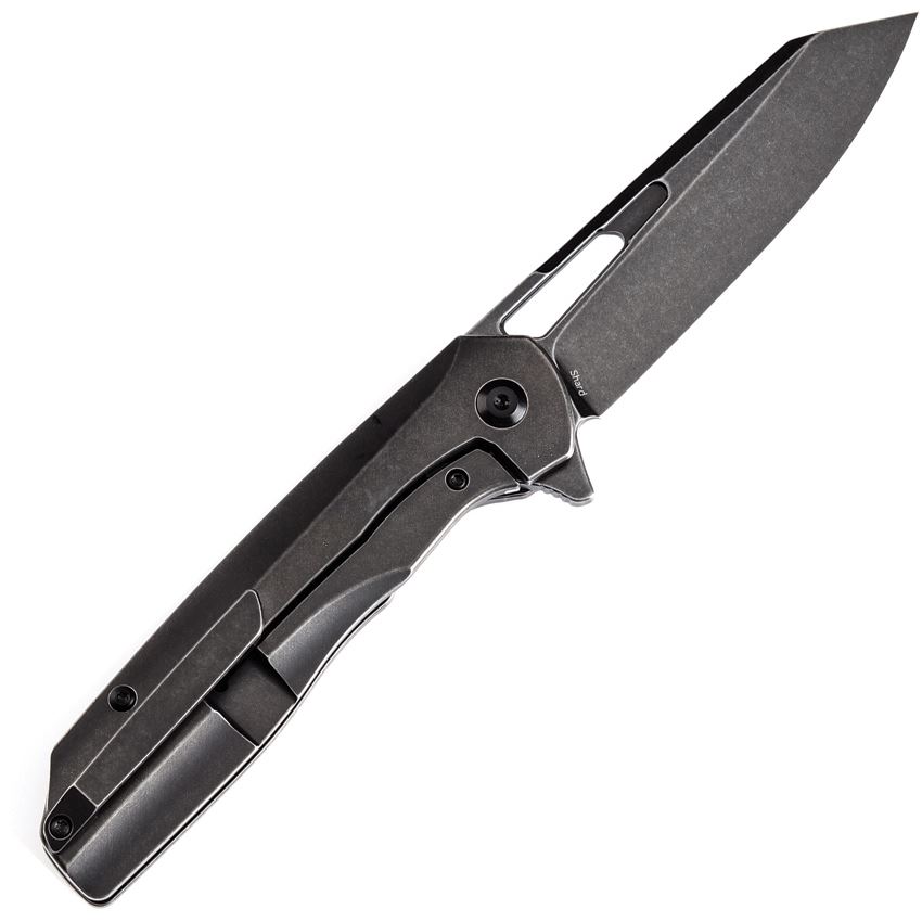 Model/Item/Part - K1006C1. Kansept - Shard Framelock Knife Copper Foil Carbon Fiber Handles. 4.5" (11.43cm) closed. 3.5" (8.89cm) black stonewash finish CPM S35VN stainless blade. Black stonewash finish titanium handle with Copper Foil carbon fiber inlay. Extended tang. Thumb pull. Pocket clip. Black nylon zippered storage case. Boxed. Made in China.