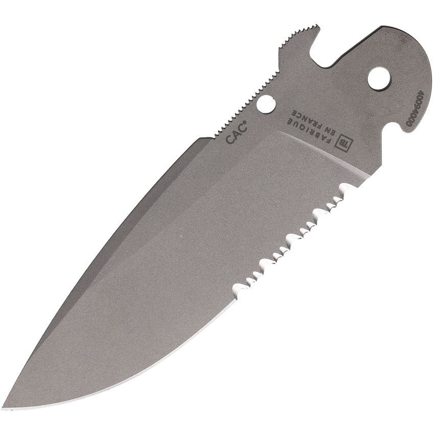 Model/Item/Part - TBOA005. TB Outdoor - C.A.C. Replacement Blade Stonewashed. C.A.C. Replacement Blade. The STONEWASHED type surface treatment preserves the appearance of the metal while considerably limiting reflection. Unlike sandblasting, this aspect in no way calls into question the exceptional corrosion resistance characteristics of MOX® steel. Made in France.