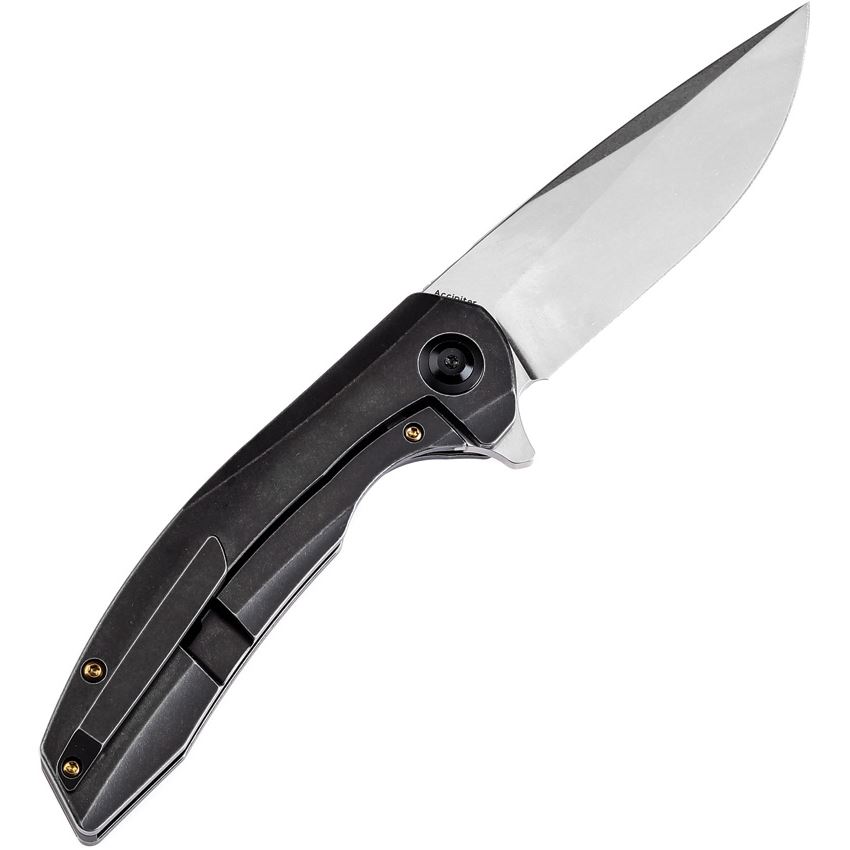 Model/Item/Part Number - K1007E2. Kansept Accipiter Stonewash Framelock Knife Black/Copper Foil Handles. 4.63" (11.76cm) closed. 3.63" (9.22cm) stonewash finish S35VN stainless blade. Black stonewash finish titanium handle with Copper Foil carbon fiber inlay. Extended tang. Pocket clip. Black nylon pouch. Boxed. Made in China.