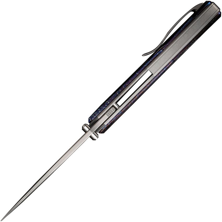 Model/Item/Part Number - WE230671. WE Swordfin Tanto Linerlock Knife Flame Gray Handles. 4.38" (11.13cm) closed. 3.25" (8.26cm) bead blast finish CPM-20CV stainless tanto blade. Gray titanium handle with Flame titanium onlay. Thumb stud. Extended tang. Pocket clip. Black nylon zippered storage case. Boxed. Made in China.