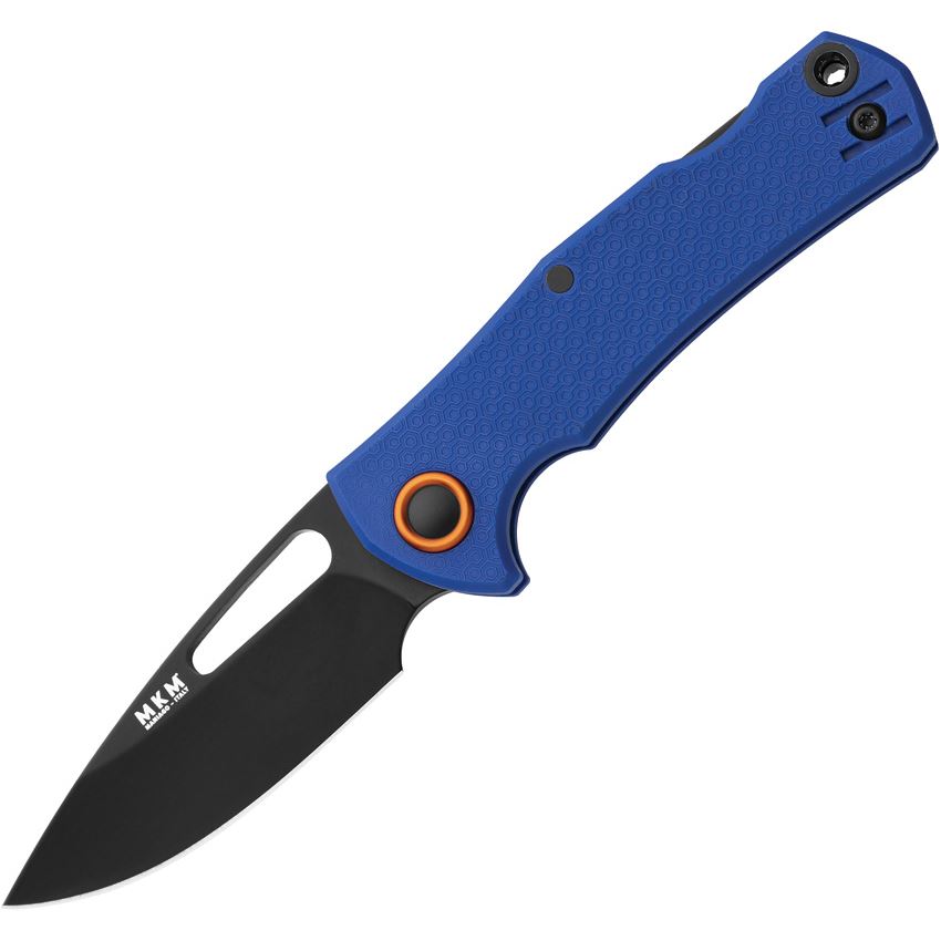 Model/Item/Part Number - MKMLVPBL. MKM-Maniago LOV Lockback Knife Blue Handles. 4.38" (11.13cm) closed. 2.75" (6.99cm) black Bohler N690 stainless drop point blade. Blue FRN handle. Thumb pull. Pocket clip. Lanyard hole. Top Shield coated blade. Boxed. Made in Italy.