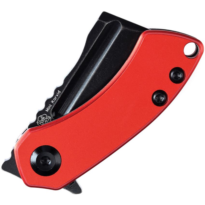 • Kansept Mini Korvid Black Stonewash Linerlock Knife Red G10 Handles