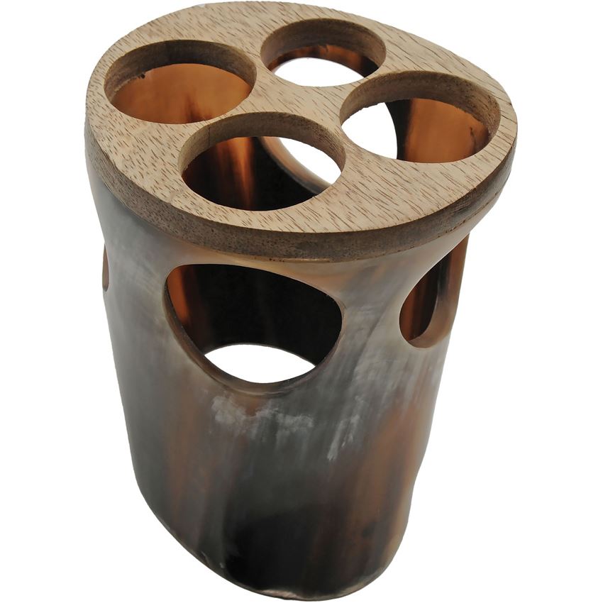 Model/Item/Part Number - PA230990. India Made Viking Horn Set w Stand. Horn size: 6"-7". 5" wooden stand. Brass molding on horn rim and tip. Four horns. Due to the natural material, set received could differ from one pictured. Boxed. Made in India.