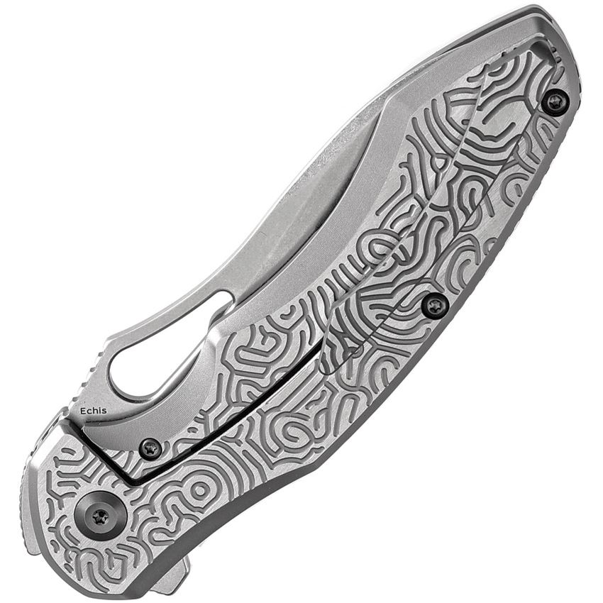 Kansept 1071A3 Echis Stonewash Framelock Knife Gray Handles